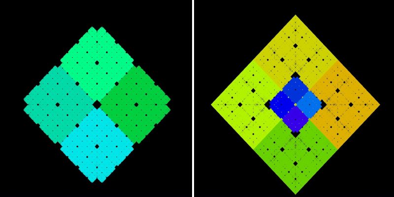 Auch wenn es hier so aussieht - einen Attraktor gibt es hier nicht! Die farblich unterschiedenen vier Teilquadrate,