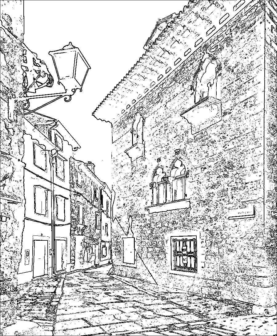 Hier ein Beispiel, das mit den Scharr-Kernel berechnet wurde. Korrektur, Invertierung und Schwellenwert